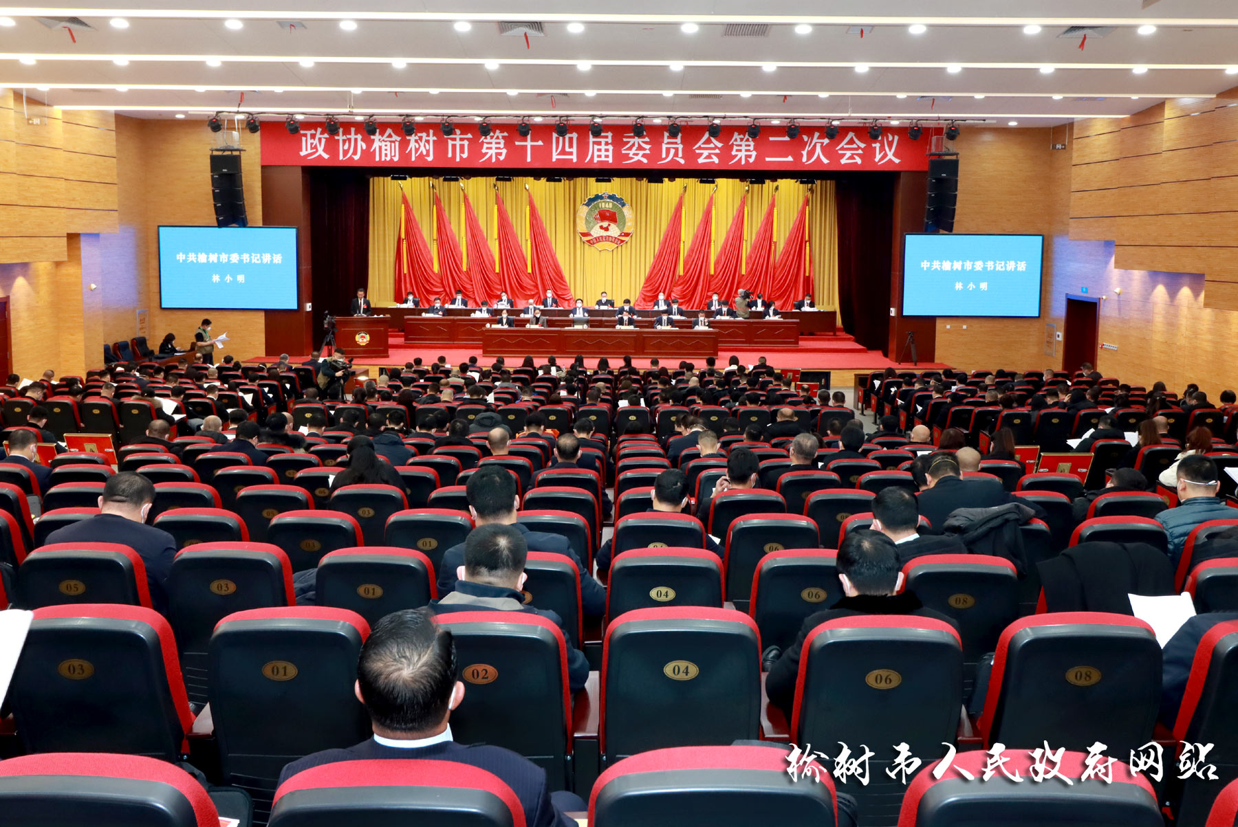 林小明、金海、张媛、马驰、绳丽光、纪国锋在主席台前排就座。市委、市人大、市政府领导;市法院、开发区主要领导;驻榆部队领导出席会议。本次会议应出席委员376名,实际到会296名,符合规定人数。